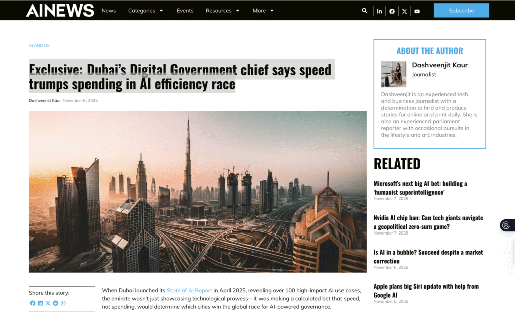 Además, Dubái está construyendo un modelo único de gobierno impulsado por la inteligencia artificial, liderado por Matar Al Hemeiri, CEO de Digital Dubai Government Establishment. A diferencia del enfoque más orientado a la inversión de Abu Dabi, Dubái pone el foco en la velocidad de implementación y la integración ética desde el primer día. Un ejemplo tangible es DubaiAI, un asistente virtual que ya gestiona más de 180 servicios públicos, y la adopción masiva: el 96% de las entidades gubernamentales ya usan soluciones de IA.